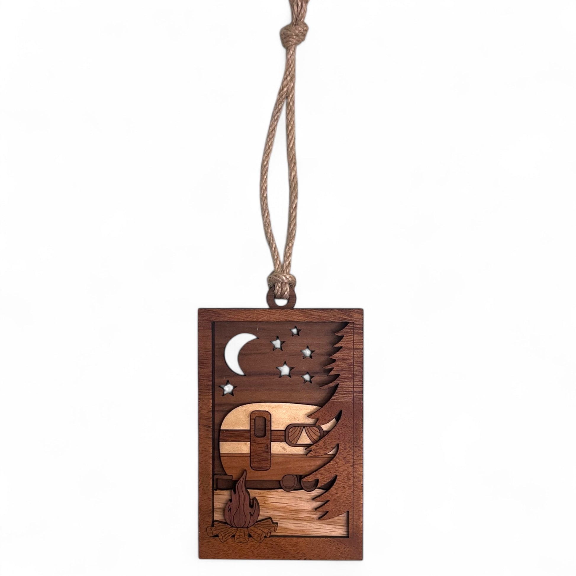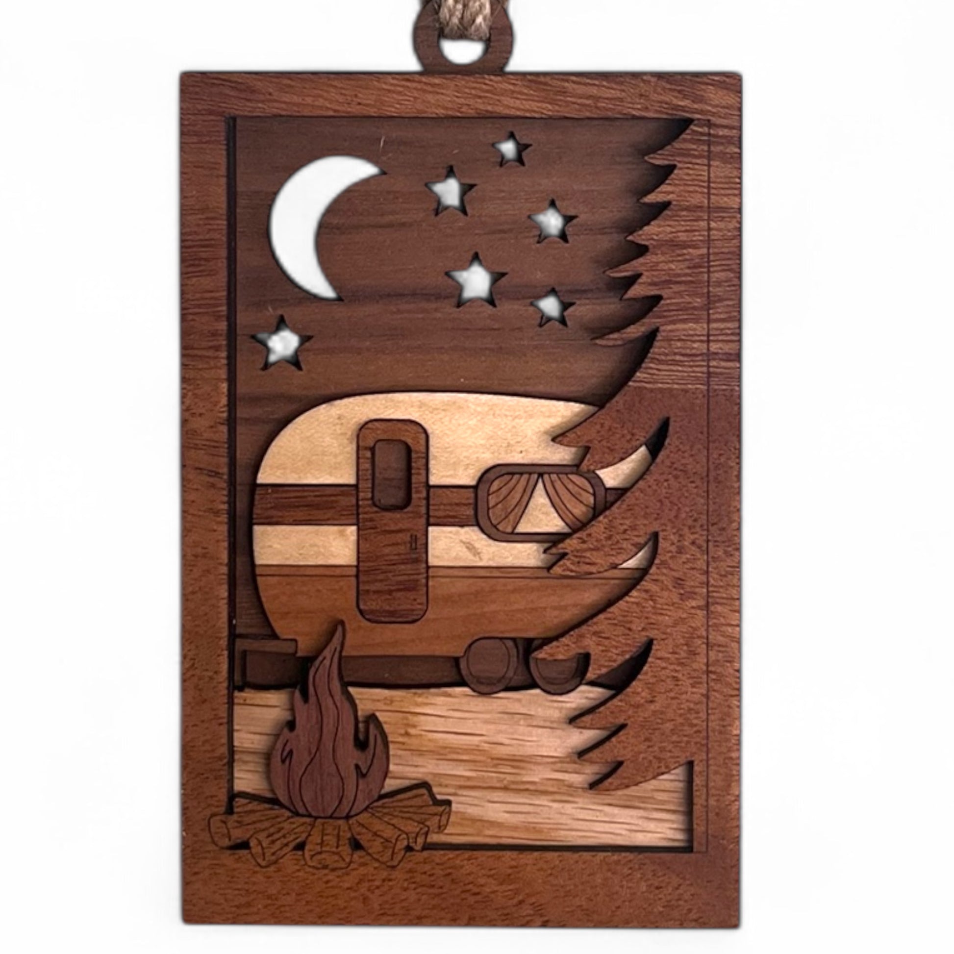 For the wanderers, dreamers, and s’mores lovers! This layered wood ornament features a cozy camper under a starry sky with a glowing campfire — the perfect tribute to life on the road or nights under the pines. It’s a rustic, nature-inspired addition to your holiday decor that’ll make any adventurer smile.