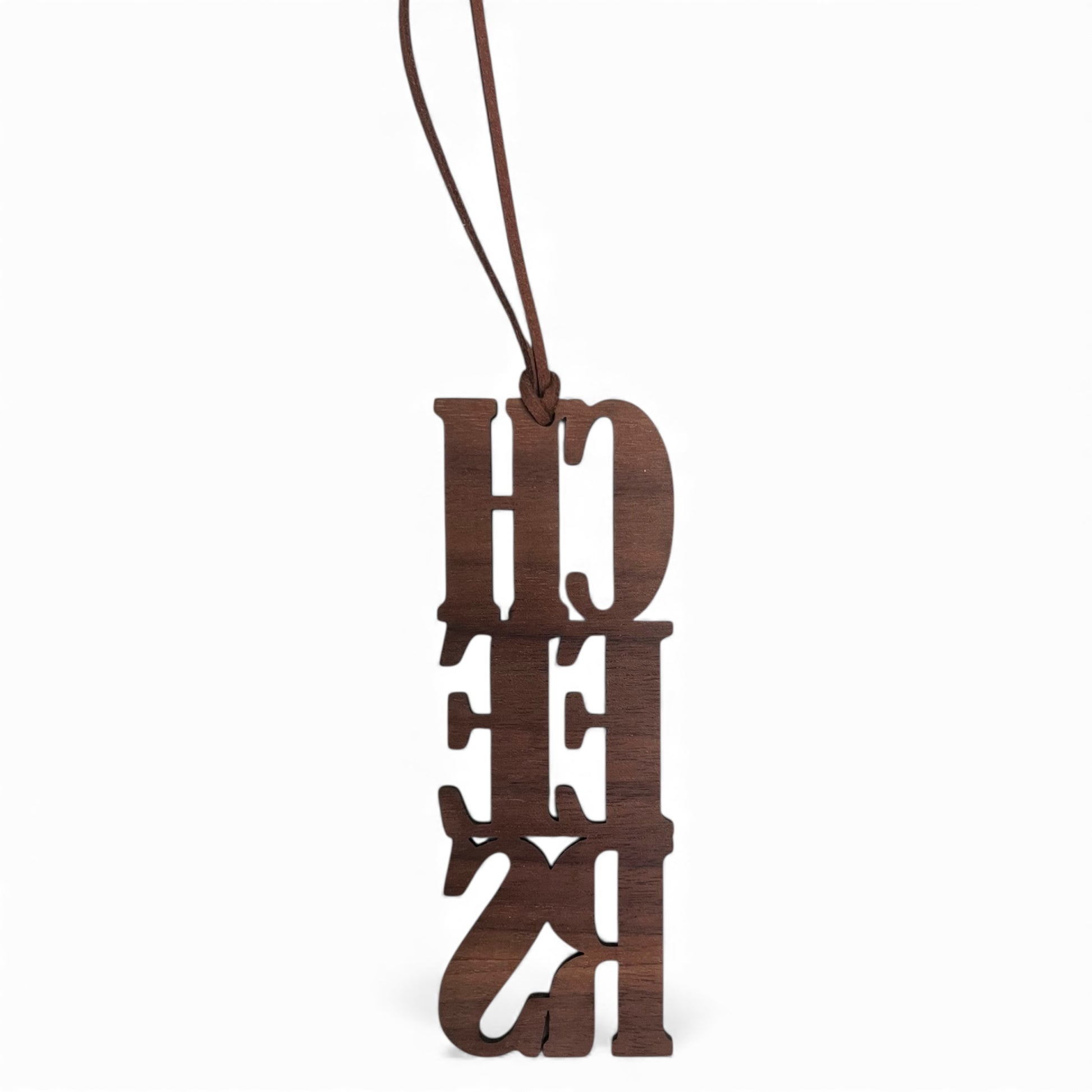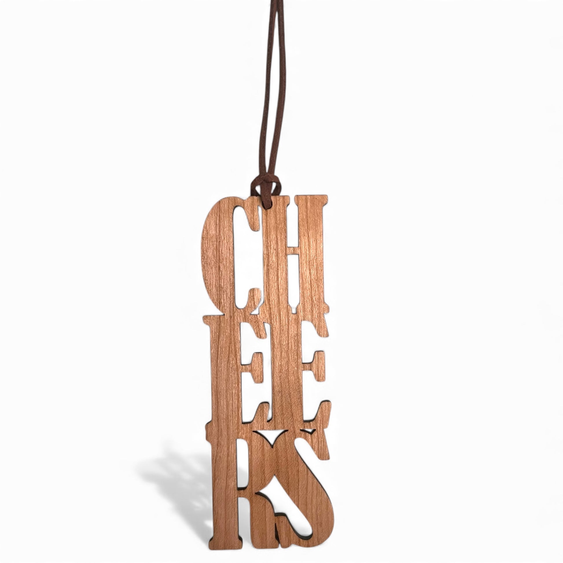 Dress up your favorite bottle with this modern “CHEERS” wooden wine tag. Slip it over a bottle of wine, cider, or sparkling water to instantly turn it into a thoughtful hostess gift, holiday treat, or celebration-ready moment.