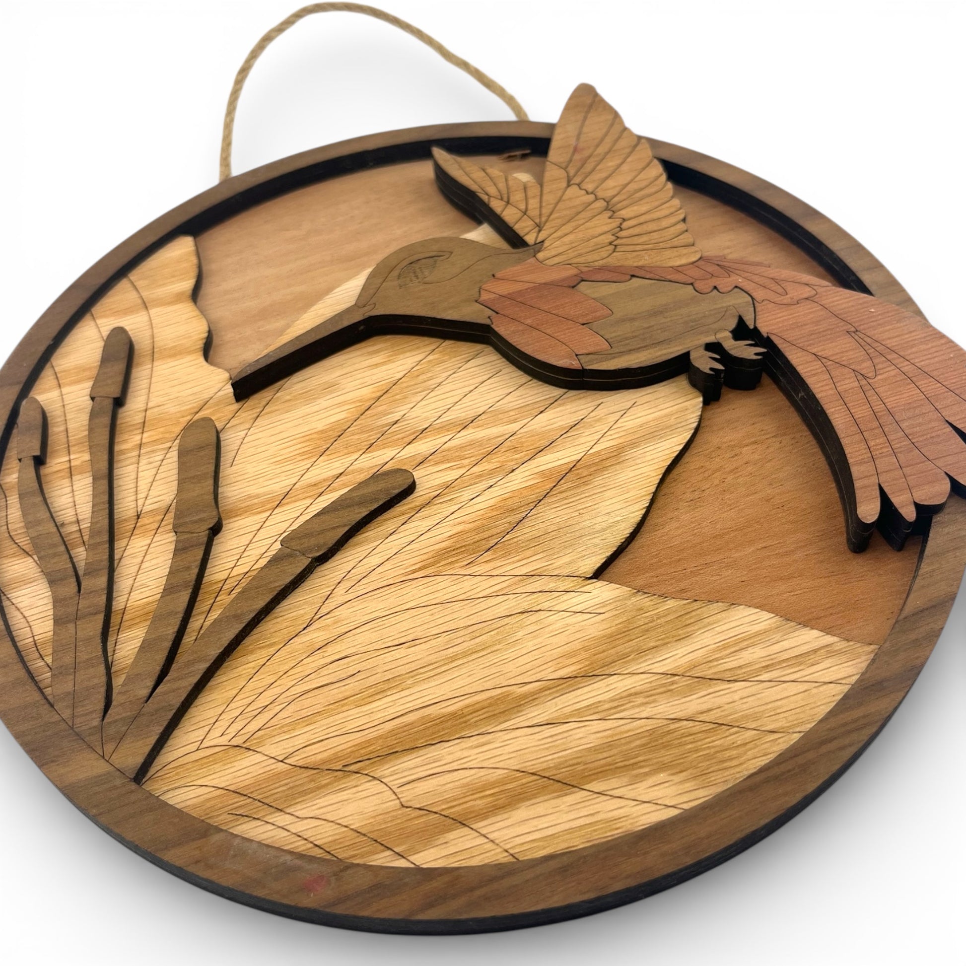 This round hummingbird wall art captures the beauty and movement of nature through layered wood and rich details. Designed with warm tones and flowing shapes, it brings a calm, organic feel to any room- perfect on its own or as part of a gallery wall display.
