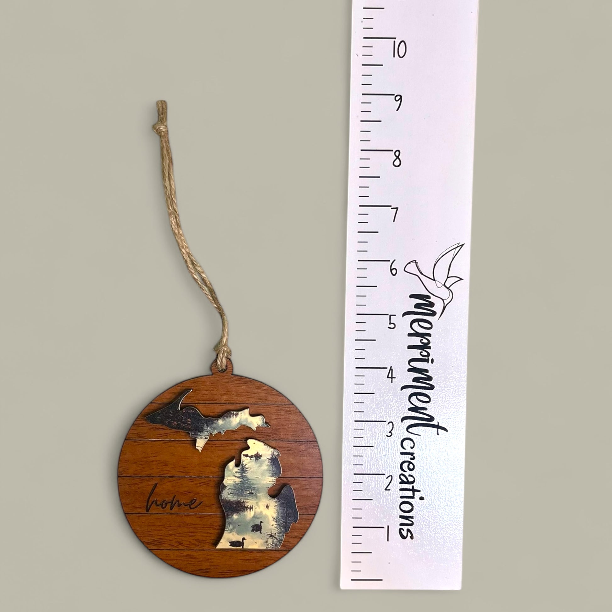 Celebrate your love for the Great Lakes State with this stunning Michigan Home Ornament. Featuring a peaceful lake reflection image within both the Upper and Lower Peninsulas, this design captures the natural beauty of Michigan’s outdoors. The engraved home script adds a heartfelt finishing touch, making it a perfect keepsake for Michigan natives, lake lovers, or anyone who finds home where the pines meet the water.